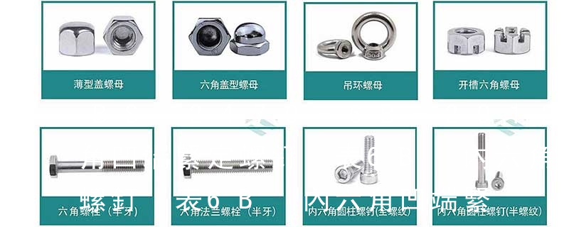 不銹鋼螺絲產品主要有:外六角螺栓、圓柱頭內六角螺釘(杯頭)、內六角凹端緊定螺釘(凹端機米)、內六角平端緊定螺釘(平端機米)、內六角尖端緊定螺釘(尖端機米)、內六角柱端緊定螺釘(柱端機米)、沉頭內六角螺釘(平杯)
